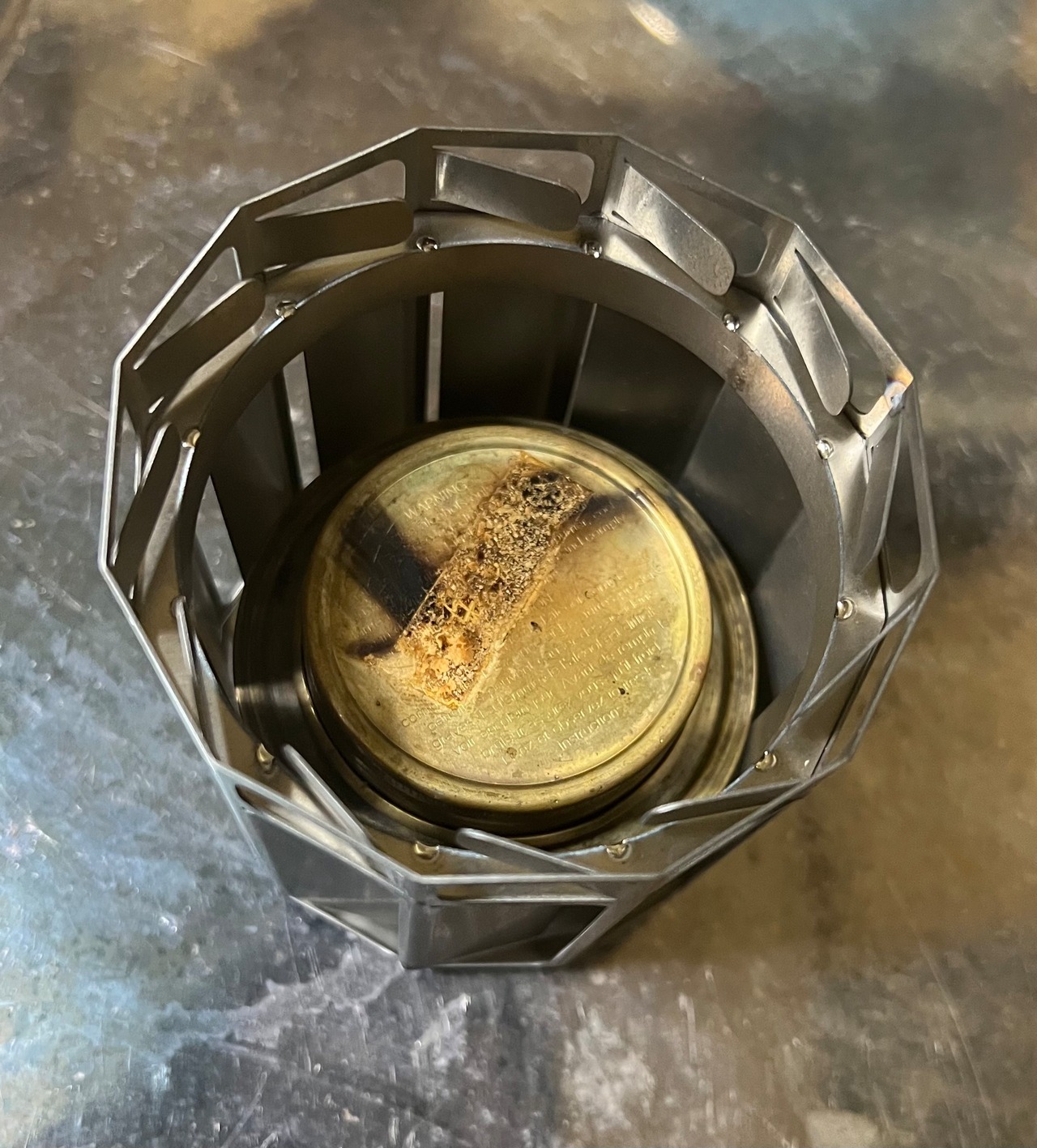燃料促進器の上に鍋、ヤカンをそのまま載せて、調理、湯沸かしできます。 サービス品のチタン製金網 直径14cmは、金属アレルギーのある方にご利用を検討ください。 熱による少しの歪みは、ガスコンロで炙り、重い鍋を置いて直せることがあります。